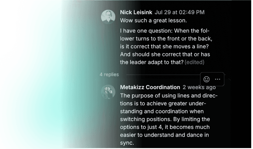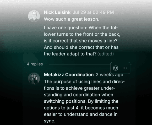 Inside our community, you'll find a dedicated space to connect with dancers in your area. Many of our students have formed local practice groups, meeting up to train and grow together.