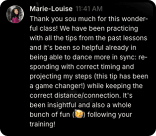This program is designed to work both solo and with a partner. In fact, 50% of our students do it in “solo” mode and see massive progress. Every module includes exercises tailored for solo practice, so you can refine your technique, control, and musicality—no partner needed.